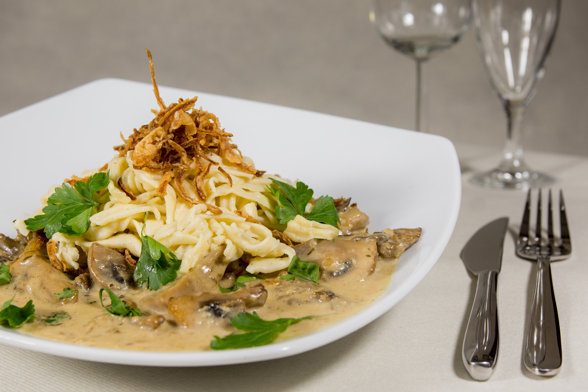| Toms Spezial Käsespätzle mit Pilzragoût mit extra Speck | 16,00 € 17,50 € | ||