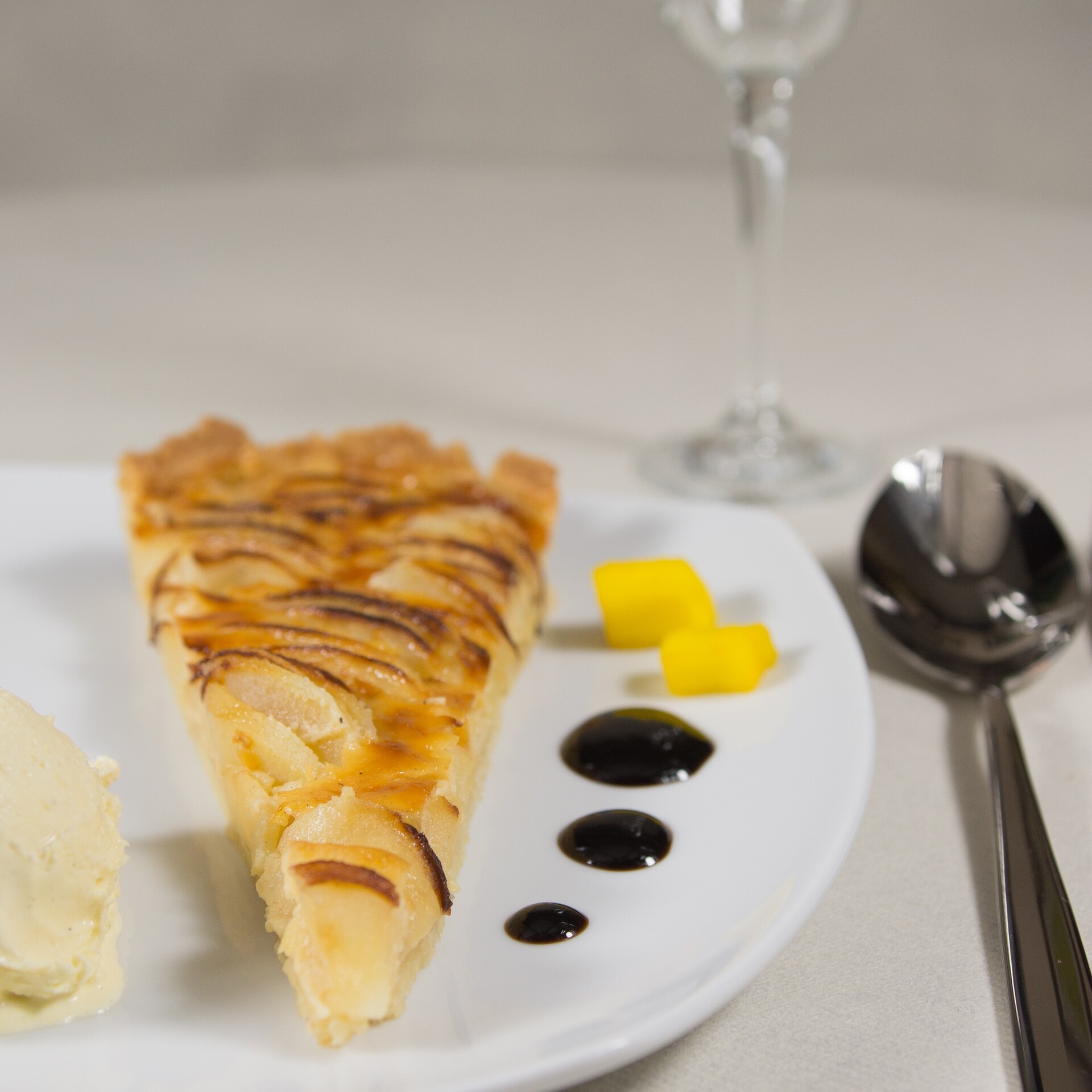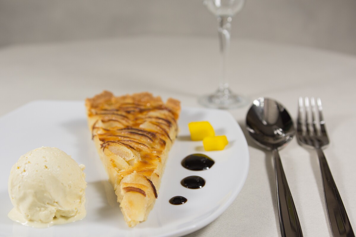 Apfelkuchen nach schweizer Rezept mit Ei und Sahne gebacken, dazu Vanillecreme | 8,50€ |