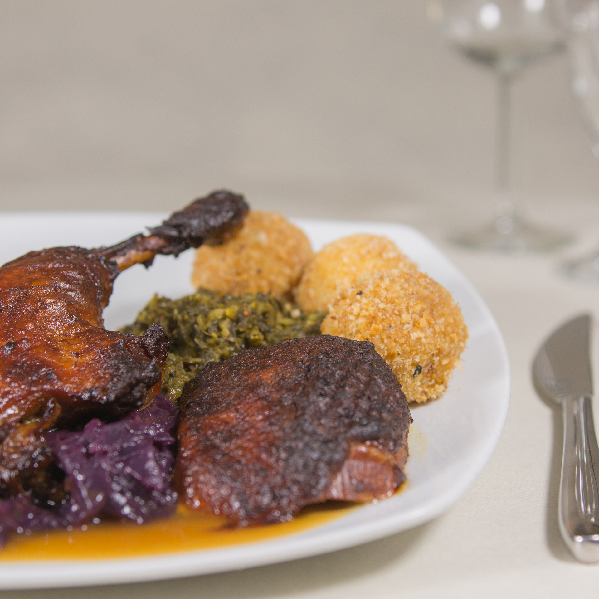 | Semmelknödel oder Spätzle auf Pilzragoût mit extra Speck | 16,00€ 17,50€ | ||